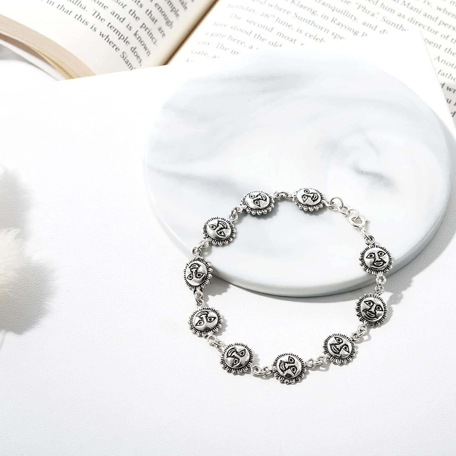 AeraVida Cute Shaman Sunny Face Links 925 Sterling Silver Bracelet | Sun Face Designs | Cute Casual Accessories | Sterling Silver Bangle Bracelets | Women's Bracelets |