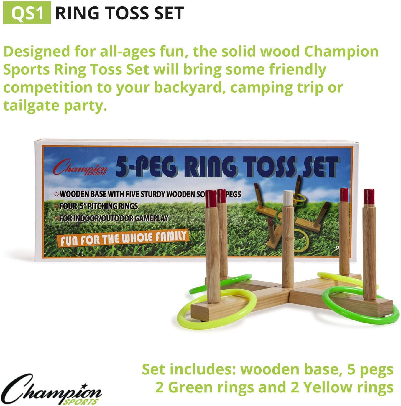 QUICK, CONVENIENT SET UP: Designed to be simple and fast to set up and tear down, this wooden ring toss game is easy enough for anyone to set up on their own, right out of the box for backyard, Phys Ed or camping games